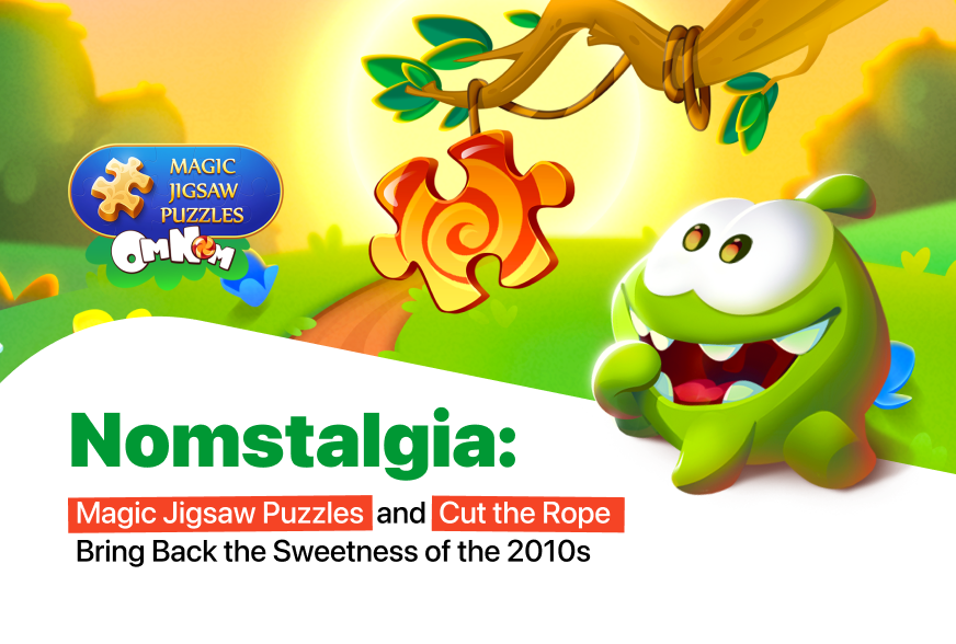 𝐍𝐨𝐦𝐬𝐭𝐚𝐥𝐠𝐢𝐚 — a rare and special collaboration between two legendary mobile games of the 2010s: 𝐌𝐚𝐠𝐢𝐜 𝐉𝐢𝐠𝐬𝐚𝐰 𝐏𝐮𝐳𝐳𝐥𝐞𝐬 and 𝐂𝐮𝐭 𝐭𝐡𝐞 𝐑𝐨𝐩𝐞 by ZeptoLab. At its heart is the iconic character Om Nom — a true symbol of casual gaming from that era.